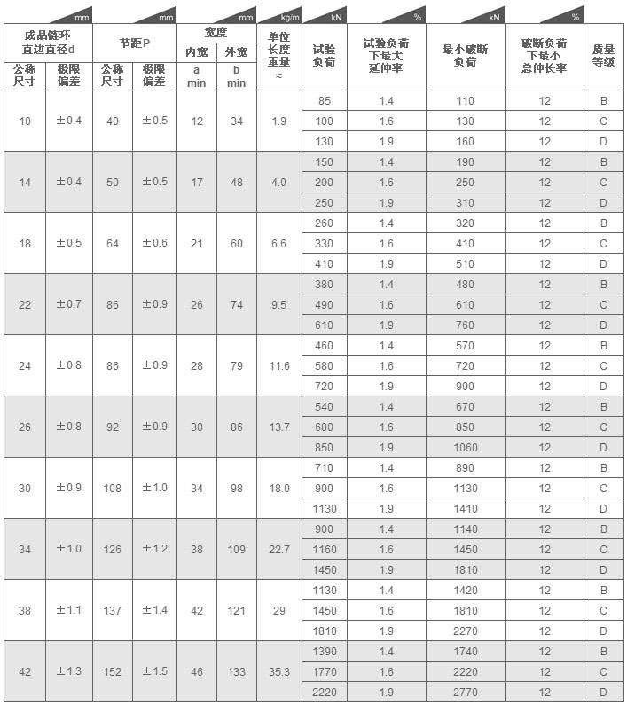 礦用高強(qiáng)度圓環(huán)鏈條參數(shù):